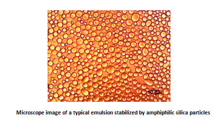 In order to accomplish this aim, Janus particles based on silica oxide and iron oxide nanoparticles have been produced. First of all, a study of the properties of the emulsion (droplet size, type of emulsion, emulsion fraction,…) has been carried out for each of the different materials produced, and under different conditions (varying water/oil ratio, pH, temperature, amount of particles, etc.). Then, once these materials have been proved to stabilize emulsions, they have been used to catalyze reactions at the water-oil interface in emulsions systems. Also, other type of amphiphilic silica particles has been studied with the same goal in mind.