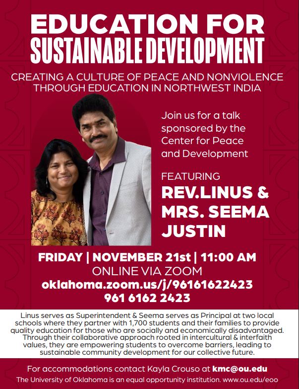 The Center for Peace and Development builds on the University of Oklahoma’s longtime work with communities in northern Uganda. CPD brings together faculty and students from across the University’s varied disciplines to build collaborative partnerships with communities affected by conflict.
