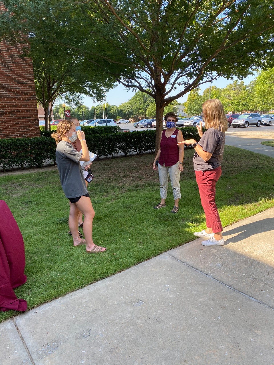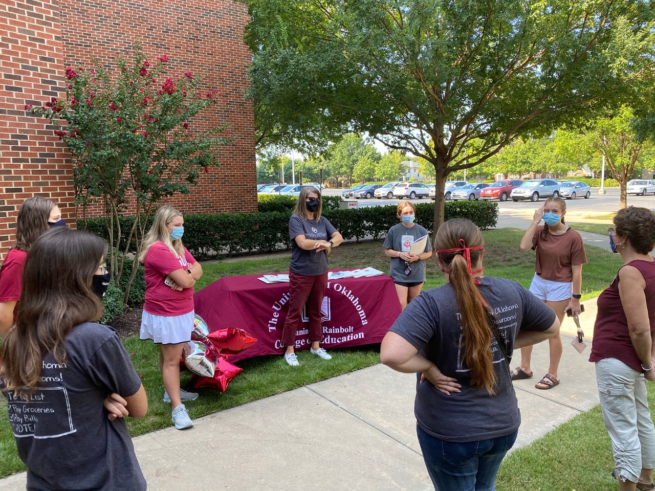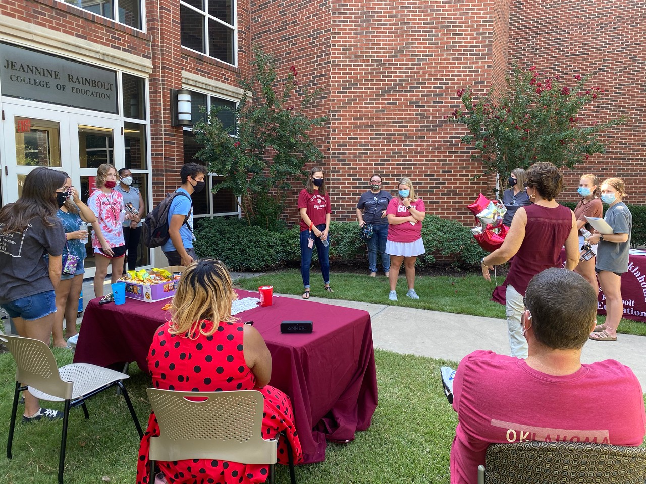 Interim Dean Stacy Reeder and Assistant Dean for Undergraduate Advising Sherry Cox welcomed OU freshmen to a socially distant welcome event this fall. Students were treated to popsicles and ice cream bars as they chatted with the dean and undergraduate advisers about about becoming a student in the Jeannine Rainbolt College of Education.