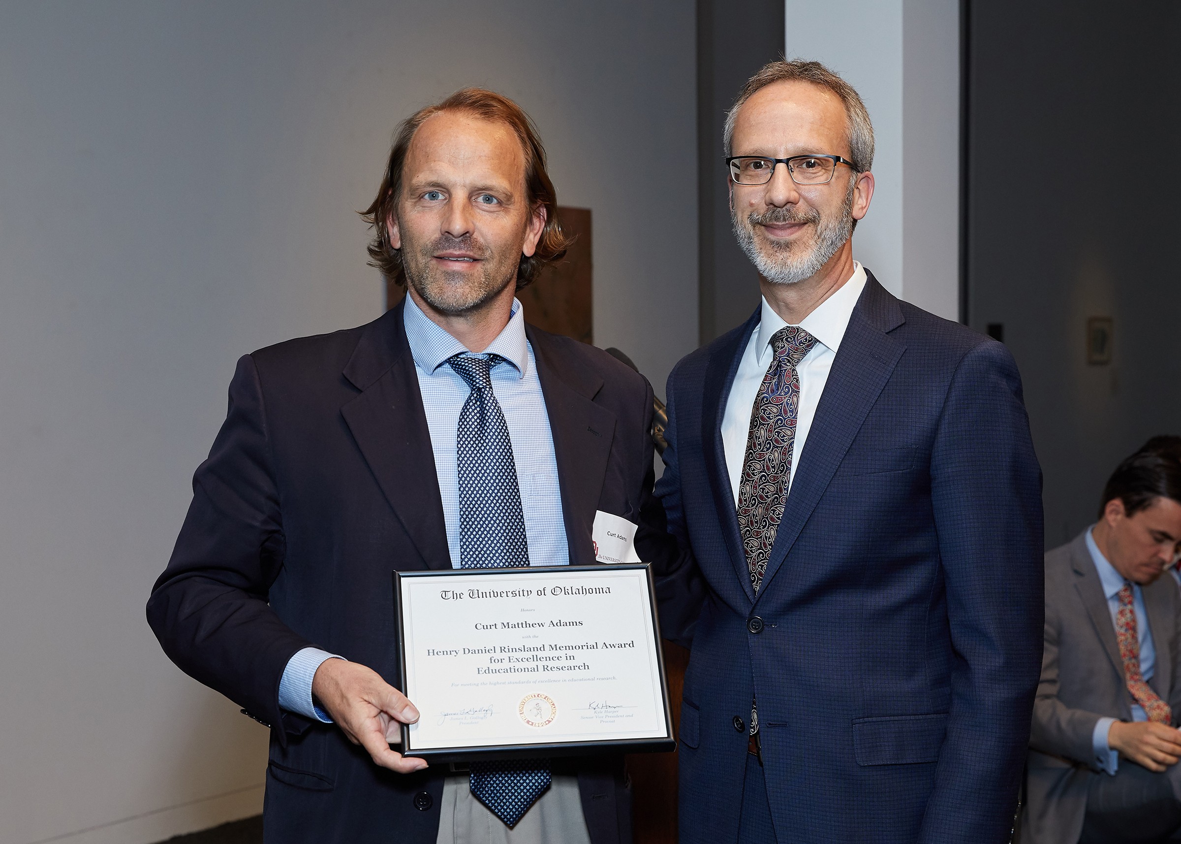 Curt Adams, Ph.D. was presented the Henry Daniel Rinsland Memorial Award for Excellence in Educational Research. Adams is an associate professor of educational administration, curriculum and supervision and co-chair of the Oklahoma Center for Education Policy at OU-Tulsa.