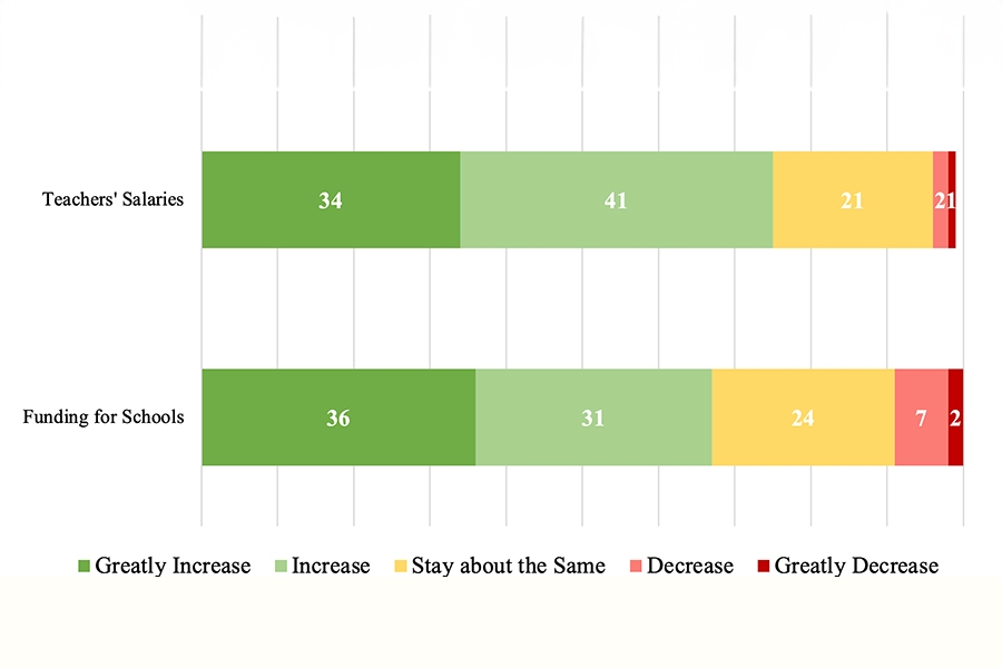 Respondents were also informed that about $13,000 per child was being spent on education in Oklahoma's public schools each year. They were then asked whether government funding for public schools should increase, decrease, or stay about the same. Figure 2 indicates support for raising funding for public schools (67%) in general. Considering the relatively stronger support for raising teachers’ salaries, it is conceivable that public support for increasing overall school funding is at least partly driven by a desire to increase teachers’ salaries in the state.