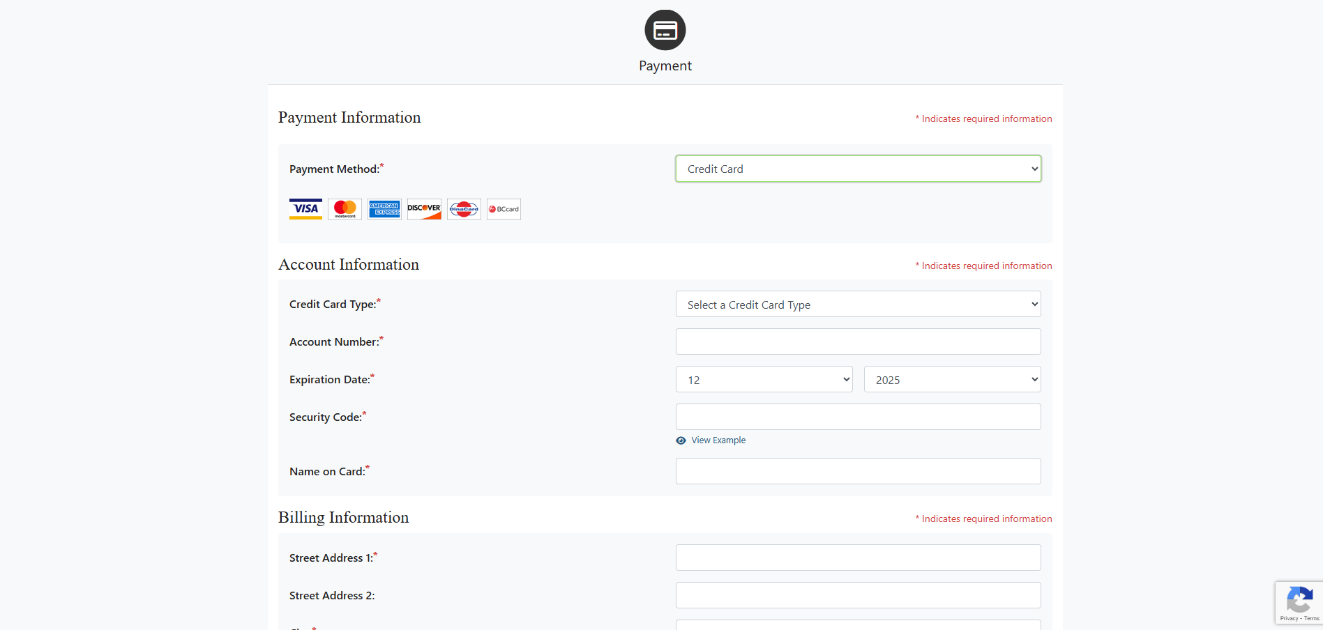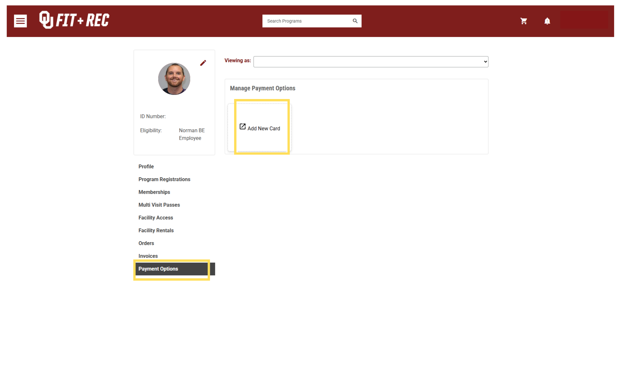 Step 6: Add a form of payment by selecting the Payment Options section.