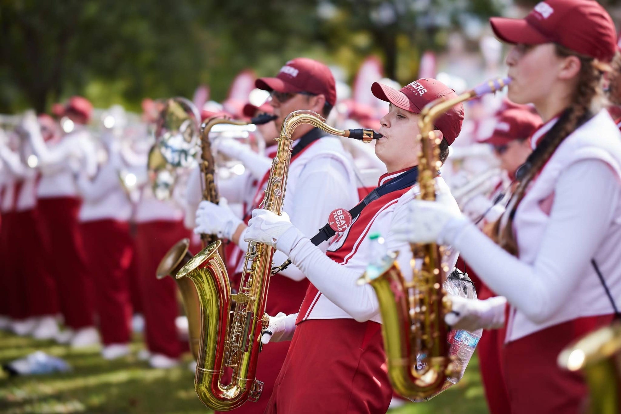 The “Pride of Oklahoma” has been supporting Sooner Spirit for over a century. The Pride includes members from over 70 different majors across campus resulting in 75% of our membership majoring in a field outside of music. Our members have an average GPA of over 3.0 and are involved in various distinguished academic programs, including National Merit Scholars, Regent’s Scholars, Dean’s List, Honors College, Eagle Scouts, Byrd Scholars, and Goldwater Scholars. The Pride of Oklahoma stands for excellence in musicianship, academics, school spirit, and commitment to the role in our surrounding community.