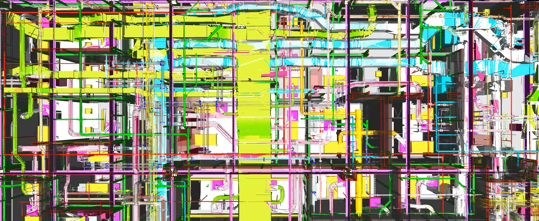 The maze reminiscent of “Tron” that Sogol showed me was a simulation of the overhead space of a hospital reception, as seen from above. The intricate arrangement of air ducts, mechanical pipes, electrical conduit, fireproofing, plumbing, domestic water lines, medical gas, and more, adds up to thirty plus distinct types of pipes, ducts, and conduits. Seen from the top, Sogol describes the overhead space of a hospital area as a living and breathing organism, the single parts of which need to be carefully positioned, distanced, and shielded, according to specific building codes and requirements. It is a painstaking operation that seems to compete well with the brain surgeries the hospital will one day house once it is built.
