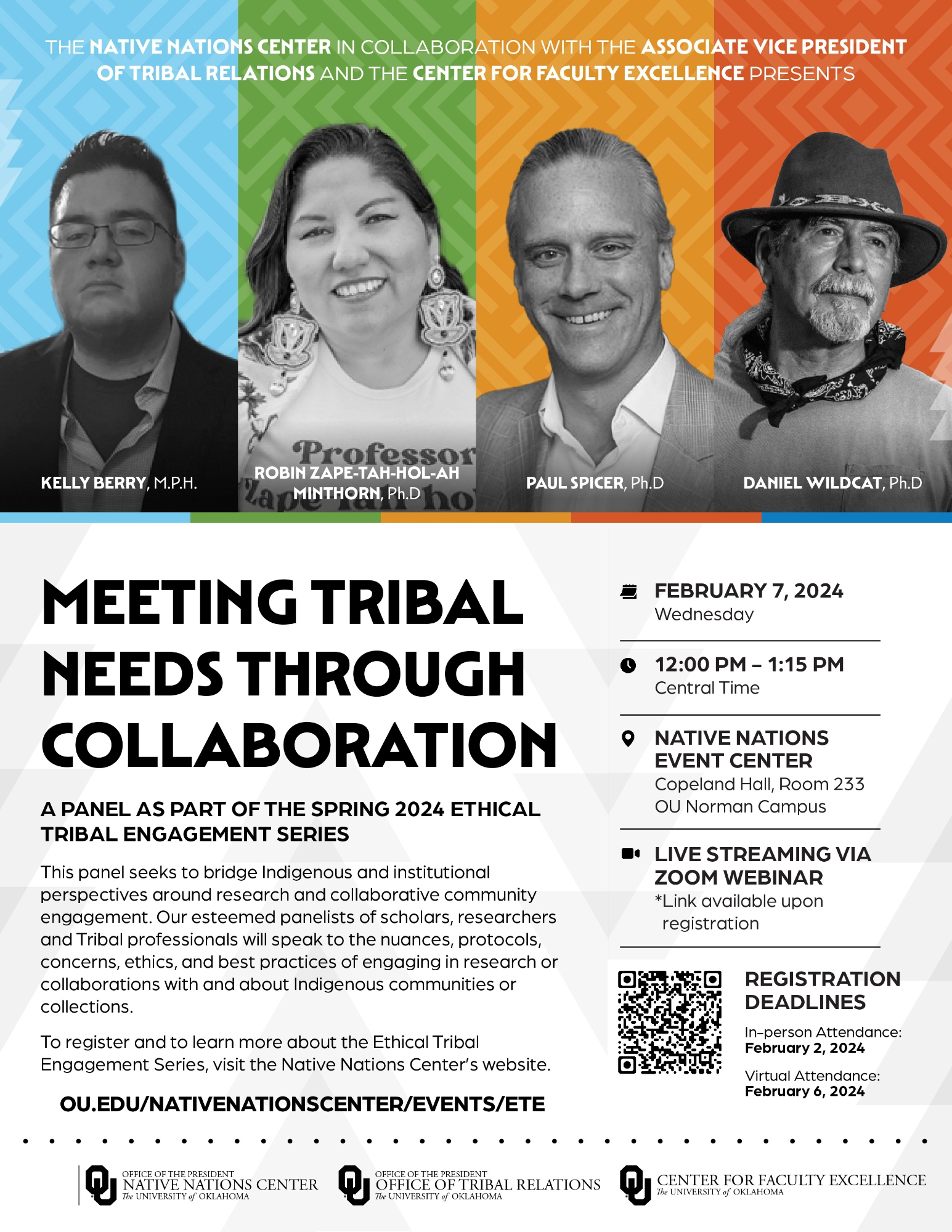 Event Venue: Our event will be hosted at the Native Nations Event Center which is located on the OU Norman Campus, in Copeland Hall, Room 233.