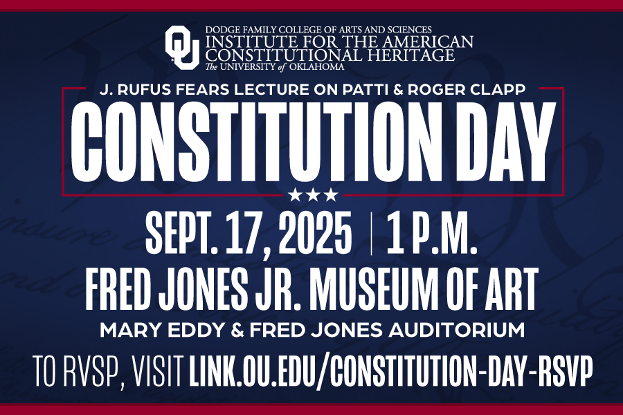 OU’s Constitution Day is named after J. Rufus Fears, a Professor of Classics and Letters. The lecture is made possible by a gift from alumni Roger and Patti Clapp.