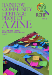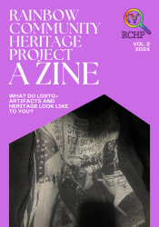 The first edition of the Rainbow Community Heritage Project6's Zine Vol. 1 was released in June 2023. This mini-zine introduces readers to the project and highlights some of the first artifacts shared with the project.