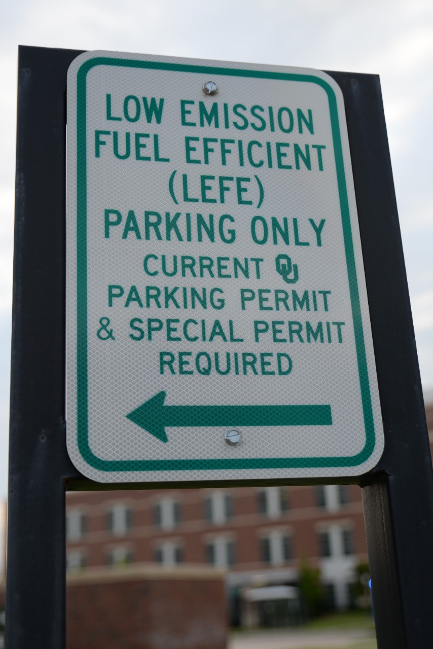 3PP, 4PP, and 5PP have parking spaces dedicated to Low-Emission, Fuel-Efficient (LEFE) vehicles. Valid parking permit required. Only vehicles with a green score of 45 and above listed on the American Council for an Energy-Efficient Economy (ACEEE) may park in the university’s LEFE parking spaces.
