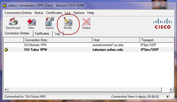 - Click "Save", and try a new connection by clicking on the Connect button in the VPN Dialer and, when requested, login with your OU credentials (username@sooner.net.ou.edu) or OUHSC credentials (username@ouhsc.edu).