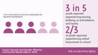 For example, many LGBTQ+ individuals (or youth) experience (Insert one point here). Please visit link.ou.edu/tulsa-lgbtq access the full report and learn more.
