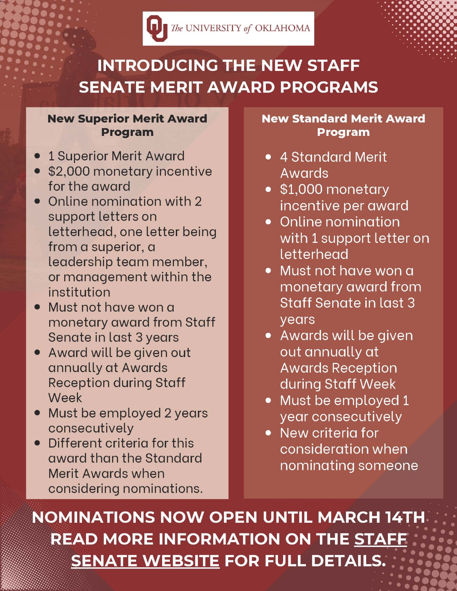Link to more information on the eligibility & criteria for each award program: Tulsa Staff Senate Merit Awards Programs