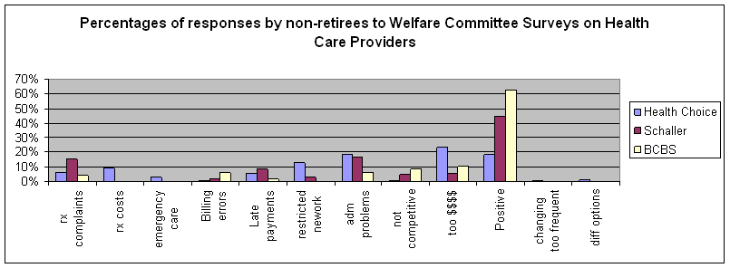University employees submitted many positive comments about HealthChoice. Some respondents applaud the fact that Health Choice has no lifetime benefits cap, and they appreciate the fact that a PPO, as opposed to an HMO, allows them to see specialists without having to secure a referral from their primary care physician. Others mentioned that HealthChoice pays for some treatments and preventive screening that BC/BS does not. For example, a psychologist on the faculty praised HealthChoice for not being “too limiting in terms of which psychiatric diagnoses they’ll reimburse for,” including Attention Deficit Disorder. Blue Cross/ Blue Shield is, to use her word, “exclusionary.” Another employee found HealthChoice’s “service to be exceptional” and yet another observed that “[t]heir case workers are wonderful to work with.”