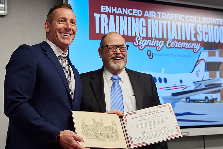 It’s official! Our Air Traffic Management program is now an Enhanced AT-CTI school. The Enhanced AT-CTI program enables qualified University of Oklahoma’s School of Aviation graduates to proceed directly to FAA air traffic control facility on-the-job training. These students will bypass the FAA Academy while completing all necessary background checks, medical clearances, and skills assessments during their degree program. OU is proud to be the first institution offering this four-year program.