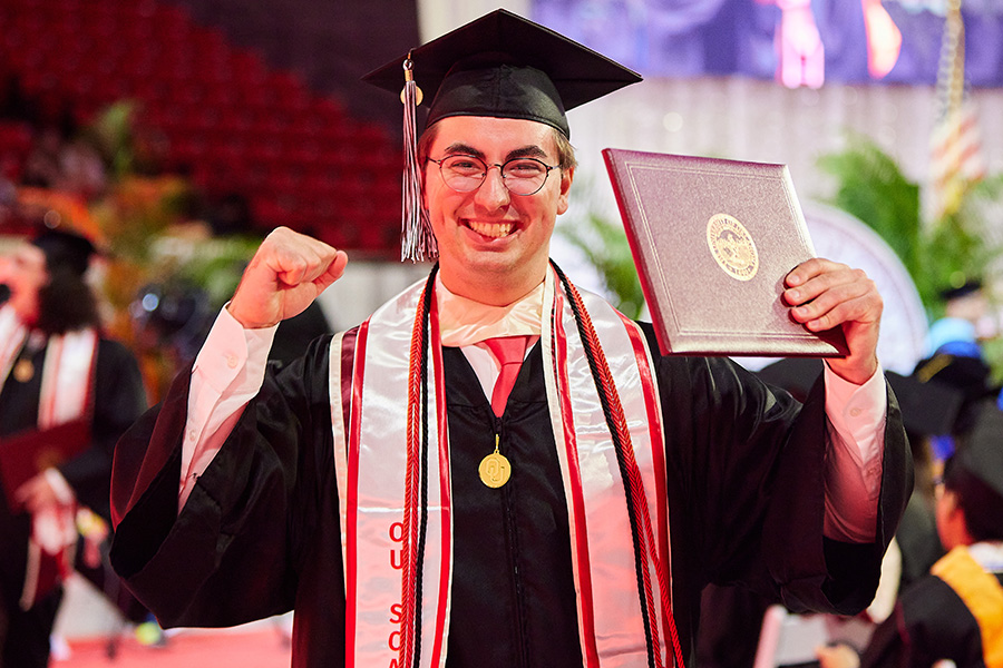 Each semester, students in the College of Atmospheric and Geographic Sciences and its units receive awards and scholarships that make a direct differenence in their education and acknowledge the hard work they put toward their education day in and day out. These awards come from a variety of sources: directors' funds, generous donors, and trusts to name a few. We hold semesterly award ceremonies leading up to convocation to celebrate these students and their work.