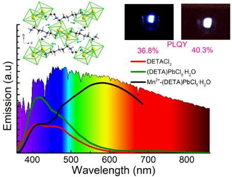 All-Inorganic and Hybrid Organic-Inorganic Halides: Recently, hybrid organic-inorganic metal halides, particularly perovskites, have attracted global interest due to the outstanding optoelectronic properties of CH3NH3PbI3 and its derivatives. In our group, we focus on rational design of hybrid organic-inorganic and all-inorganic metal halides (not necessarily perovskites) beyond CH3NH3PbI3 with primary interest in their semiconducting, luminescence, transport, and magnetic properties. Specific research projects include investigations of the solution chemistry of metal halides, light emission properties of Cu(I) and Ag(I) halides, response of multinary halides to high energy irradiation (e.g., X-rays), and development of methods to control structural dimensionality, energy band alignment and excitonic properties of hybrid metal halides.