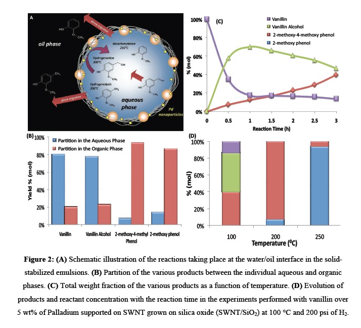 During our research several concepts have been explored, including: catalytic upgrading of bio-oil molecules and sugars, production of commodity chemicals, selective conversion of probe molecules with different solubilities, and tailoring of the catalyst and emulsion performance based on the physicochemical tuning of the nanohybrids