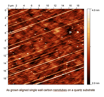 Surface probe microscopies (SPM) allow one to image the direct surface of a material with nanometer to sub-nanometer resolution. The Multimode capabilities include tapping mode atomic force microscopy (AFM), contact mode AFM, and scanning tunneling microscopy (STM). Two piezoelectric scanners are available for use with the Multimode; the J scanner is capable of measuring areas up to 120 μm x 120 μm with a vertical range of ~ 5 μm, and the E scanner is capable of imaging areas up to 10 μm x 10 μm with a vertical range of ~ 2.5 μm. Sample size is limited to a 10 mm in diameter in order to be easily mounted on the magnetic steel mounting disk.