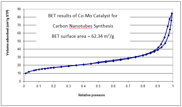 The Micromeritics ASAP 2010 (Accelerated Surface Area and Porosimetry System) provides high quality surface area (BET) and porosity measurement on different types of solid materials based on the gas adsorption theory. Carbon nanotubes and catalysts are characterized using this technique. The Micromeritics ASAP 2010 system consists of an analyzer equipped with two sample preparation ports and one analysis port, a control module, and an interface controller which helps the operation to be controlled easily and accurately. In addition, the Micromeritics ASAP 2010´s software allow us to perform automatic analysis and collect a variety of analysis reports.