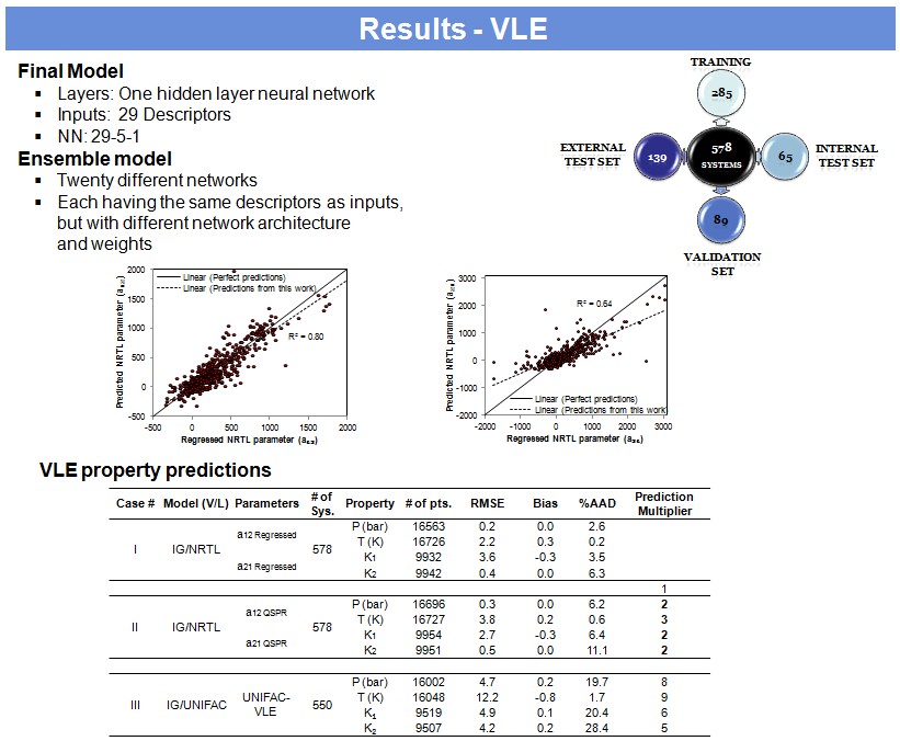 Multiphase equilibrium calculations are an integral part of the design and optimization of numerous chemical processes. Several accurate experimental techniques have been developed for measuring phase equilibrium data; however, experimental techniques are time consuming and costly. Hence, a need exists for reliable thermodynamic models capable of giving a priori predictions of the phase behavior of diverse systems in the absence of experimental data. Quantitative structure–property relationship (QSPR) modeling has the potential to provide reliable property estimates based on detailed chemical structure information.