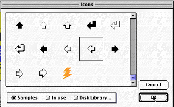 When you check "Show Icon," a dialogue appears with several button icons. Choose the back arrow with the drop shadow (see figure). Click OK.