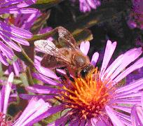 This figure is showing a bee that is collecting nectar. Along with this nectar the bee will get some pollen which will likely fertilize another flower. |