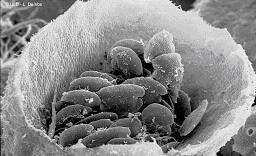 | Picture of a gemmae cup. Some plants such as liverworts produce gemmae which are exact copies of the parent plant that produced them. These gemmae are held in cupules until rain water carry them away to a suitable location for growth. |