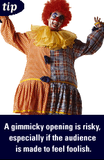 choose one to suit the situation and the audience. A gimmicky opening can