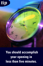 opening as defined, above, in less than five minutes. Then get down to the