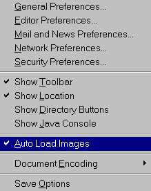 Netscape has the option of Loading the graphics automatically or at the request of the user.