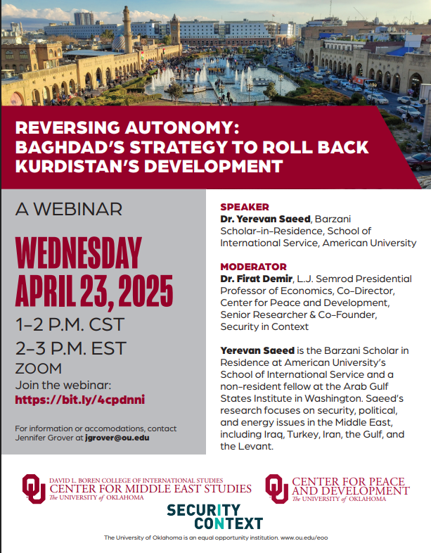 Speaker: Dr. Yerevan Saeed, Barzani Scholar-in-Residence, School of International Service, American University