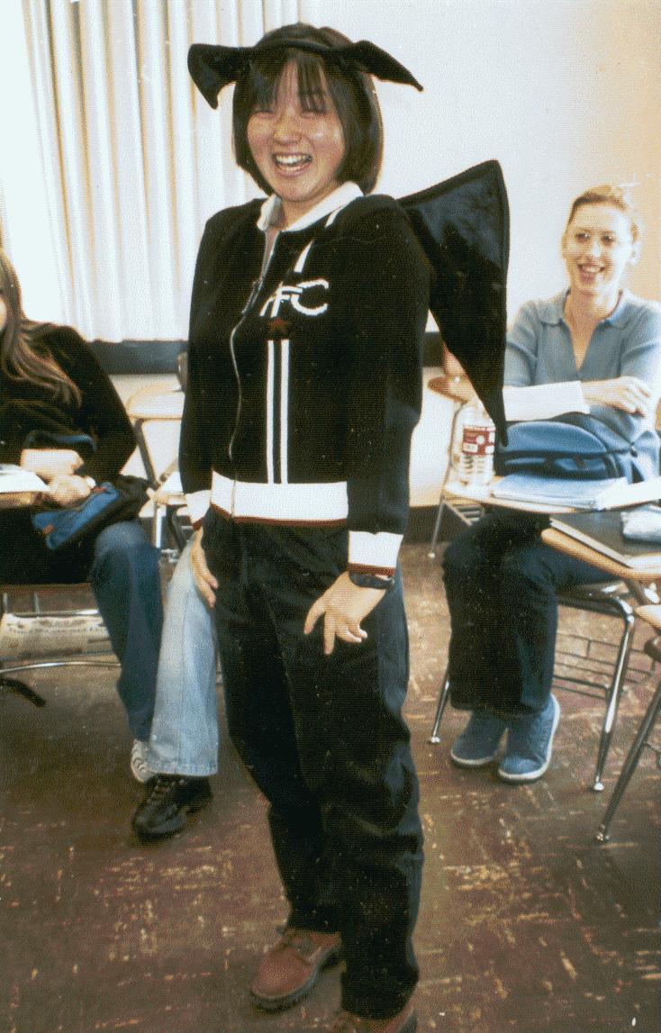 Happy Halloween 2003 Batgirl, AKA Sugi--the only brave student to wear a costume to class this year!