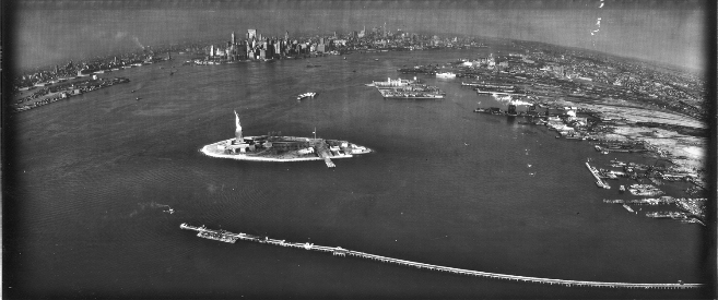 One of the best known political symbols, the Statue of Liberty standing at the entrance to the harbor in New York City (US Air Force).