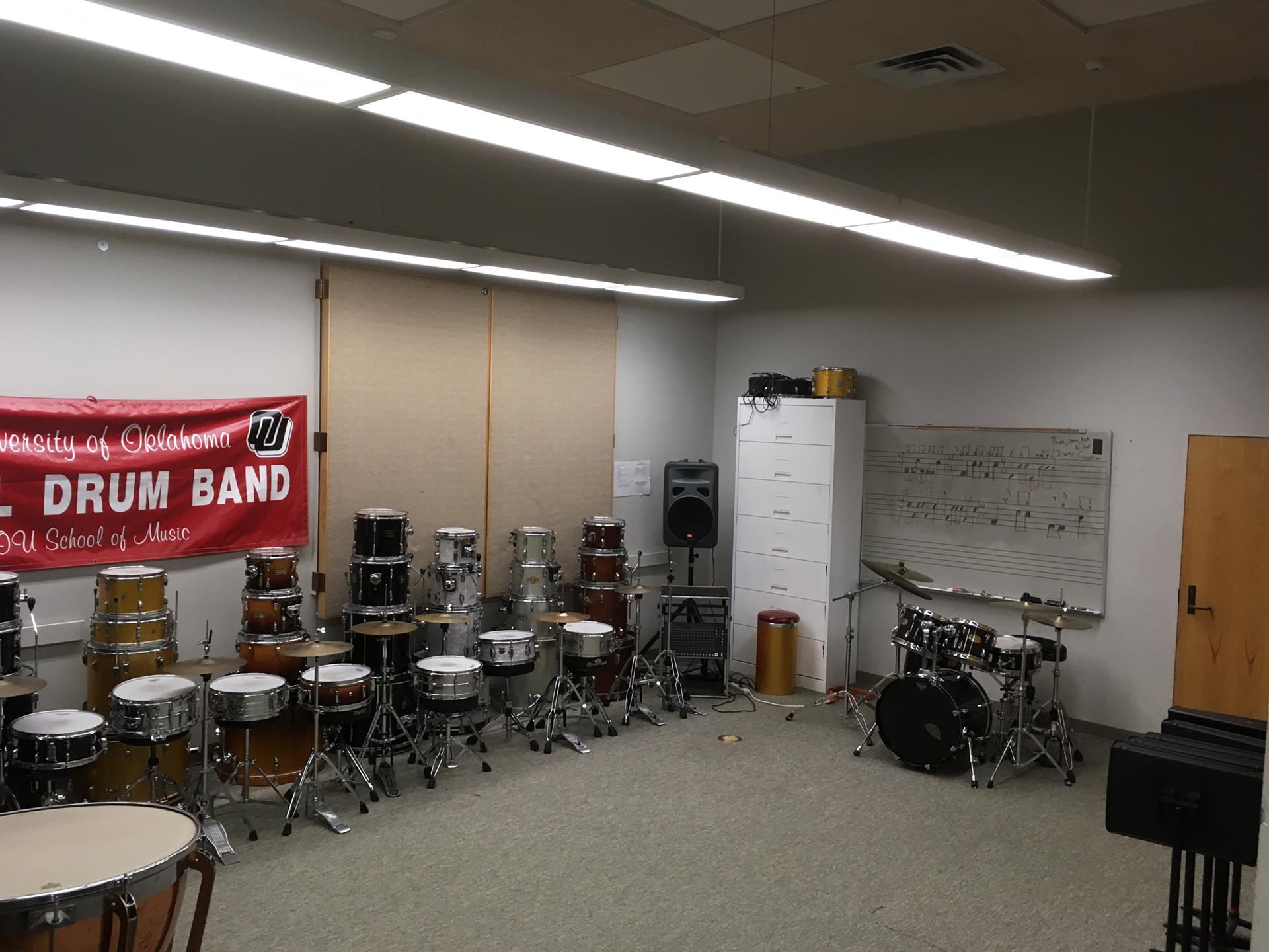 The Catlett Music Center is home to the OU School of Music. In addition to the outstanding performance, academic, and research facilities outlined here, Catlett features an extensive percussion suite with specially designed rooms for rehearsing, teaching, recording, practicing, and storage. The percussion suite includes 6 practice rooms, 2 large rehearsal spaces, a storage room, an equipment repair room, and 2 offices.