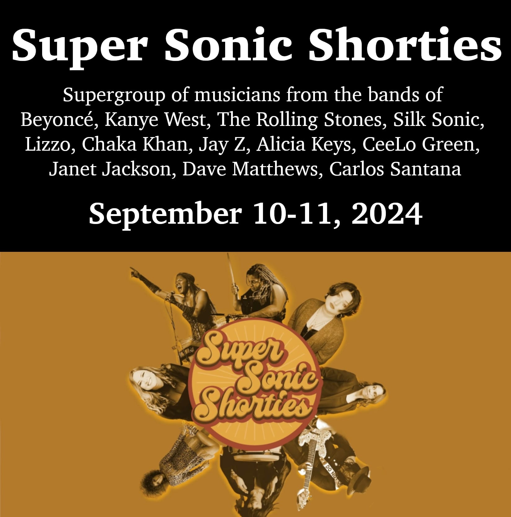 The Super Sonic Shorties are an eight-piece all-female super-group made up of some of the most successful musicians on the planet. Led by Nikki Glaspie, Beyonce’s former drummer for 6 years, the band is a who’s who of Grammy-winning musicians that are the supporting cast of titan pop stars, either currently or previously performing/touring with artists like Beyonce, Kanye West, Lizzo, Silk Sonic, Jay-Z, Bruno Mars, The Rolling Stones, Alicia Keys, The Jacksons, Common, Anderson .Paak, Kehlani, Al Jarreau, Chaka Khan, CeeLo Green, Destiny’s Child, George Michael, Dave Matthews, Carlos Santana, Herbie Hancock, and many others.