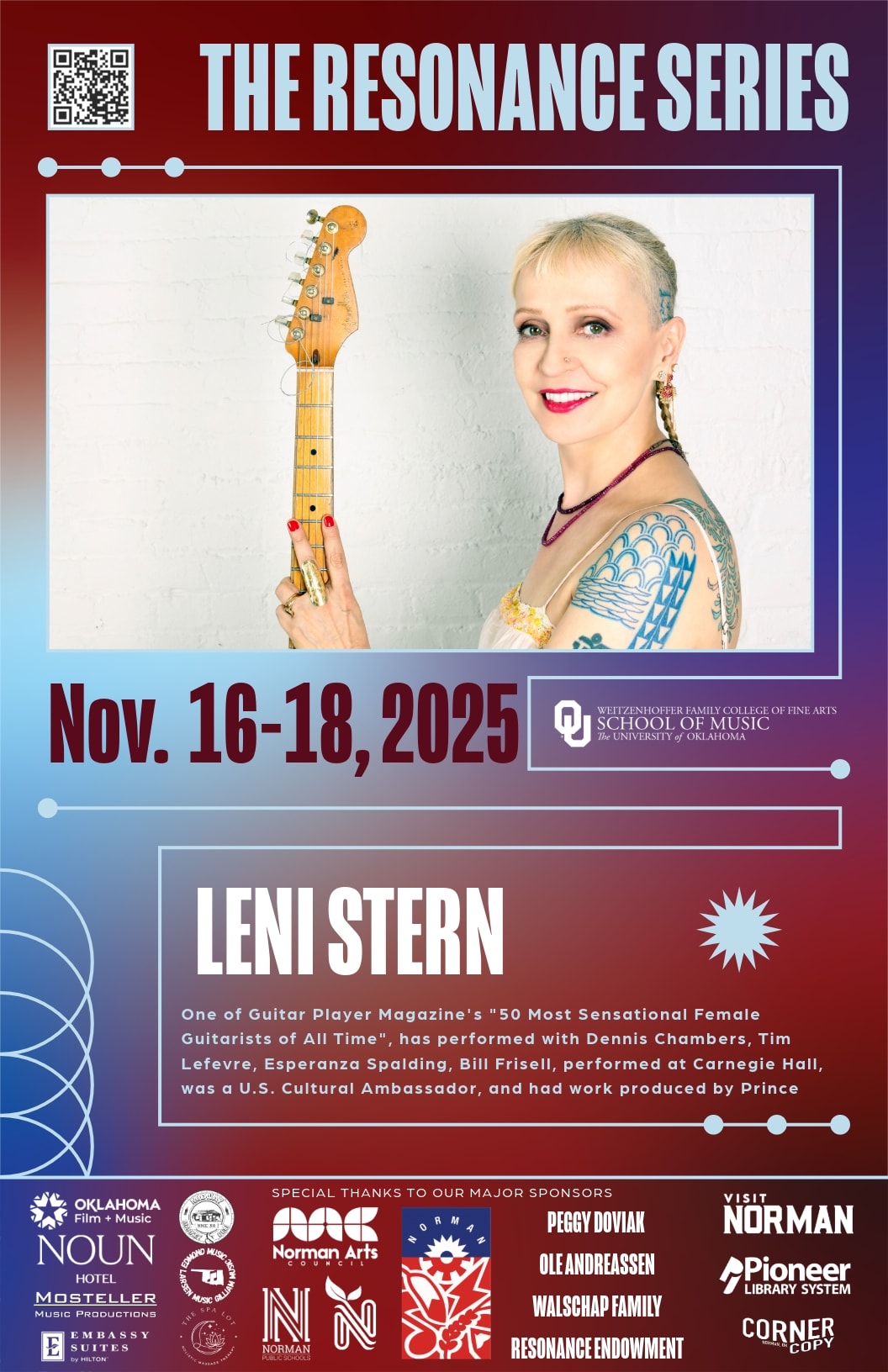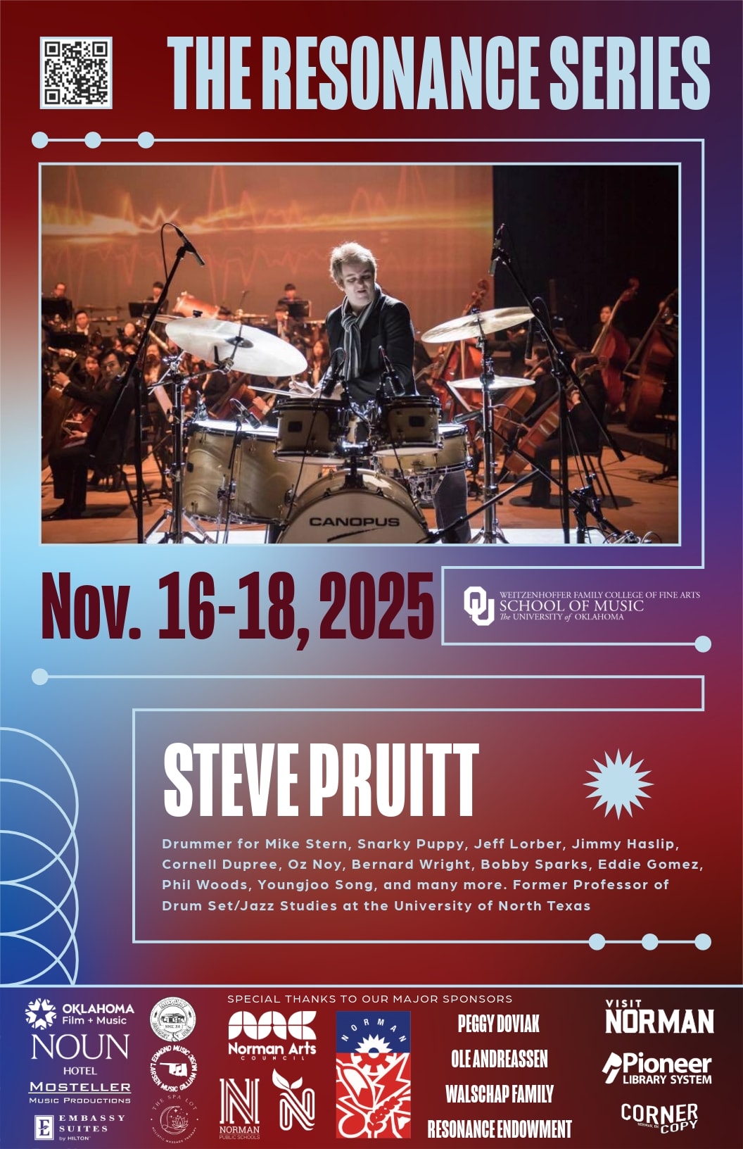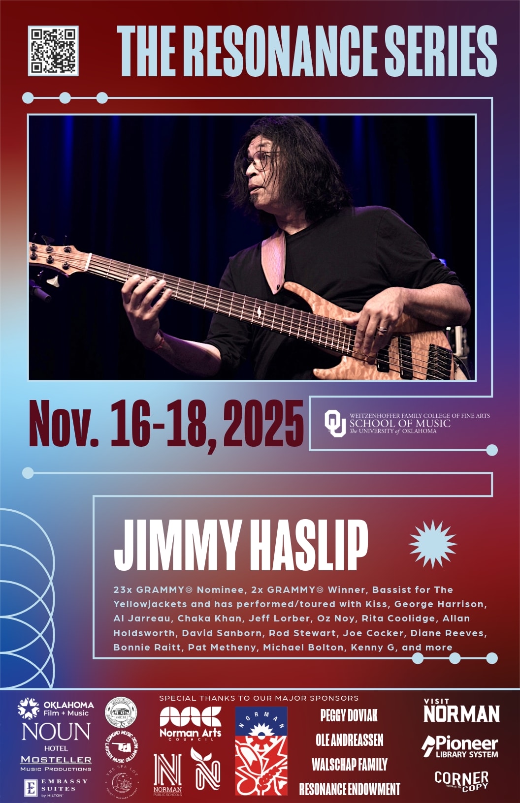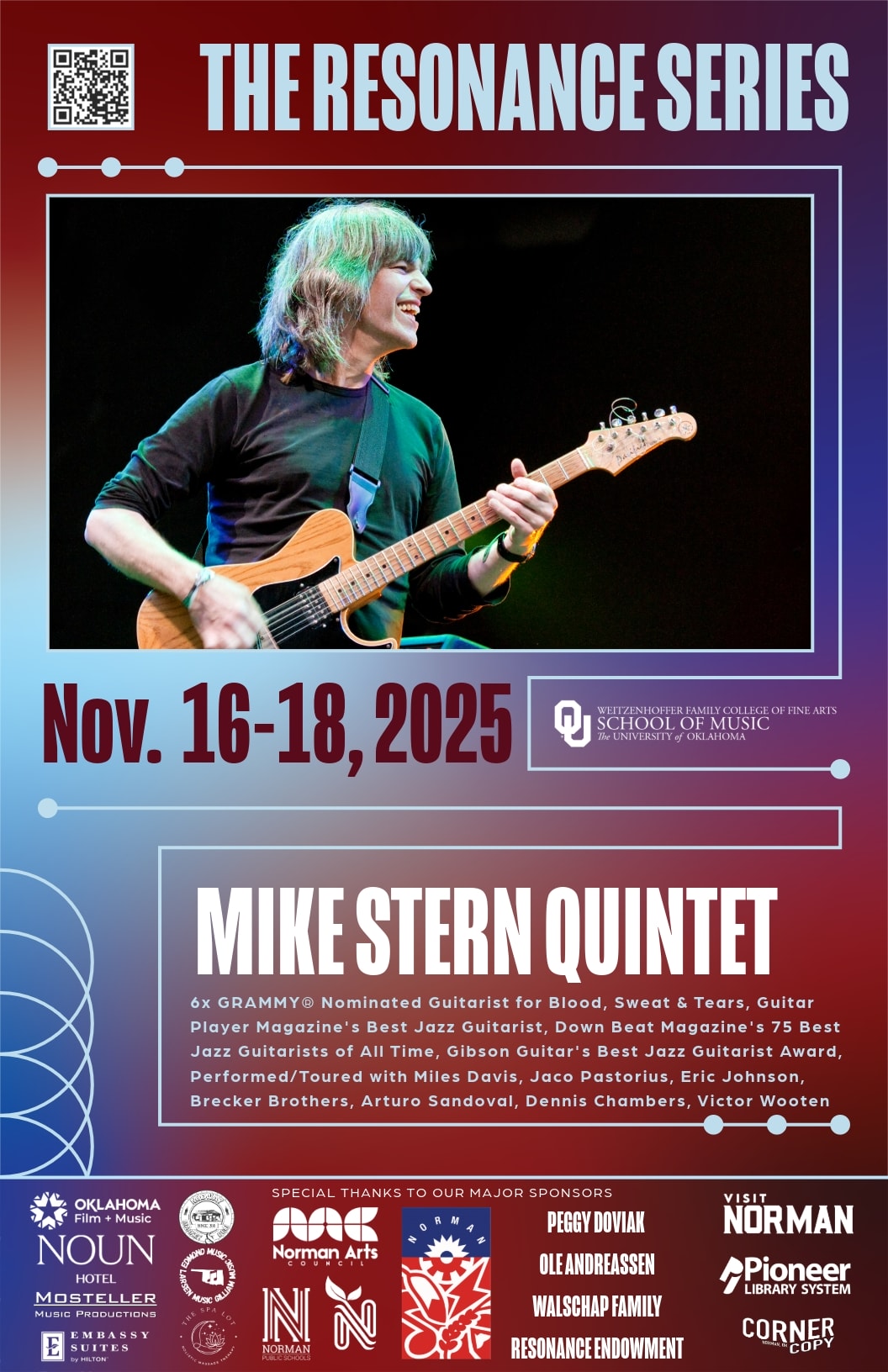 The Resonance Series’ major sponsor is the Norman Arts Council, with additional support from Peggy Doviak, NOUN Hotel, Oklahoma Film and Music Office, Onyx Lane, The Pioneer Library System, Midway Deli and AirBNB, The Embassy Suites of Norman, Norman Public Schools, Gilliam Music, Imagine Music and Arts, the Norman Music Institute, Montford Inn, Fowler Auto Group, The Winston, Benvenuti's Ristorante, Legend's Restaurant, Louis Bar & Grill, Tea Cafe, and multiple private donors.