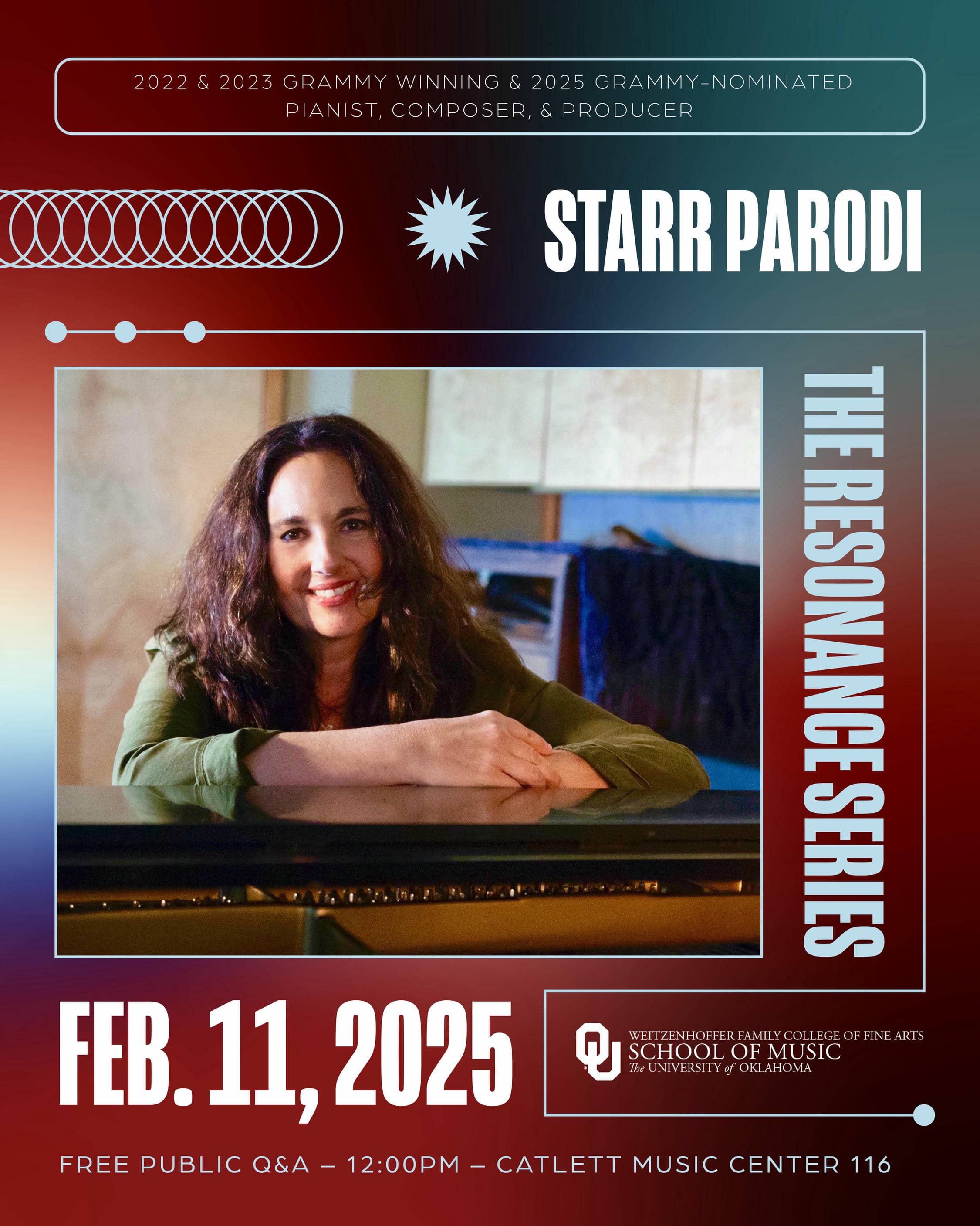 The Resonance Series’ major sponsor is the Norman Arts Council, with additional support from Peggy Doviak, NOUN Hotel, Oklahoma Film and Music Office, Onyx Lane, The Pioneer Library System, Midway Deli and AirBNB, The Embassy Suites of Norman, Norman Public Schools, Gilliam Music, Imagine Music and Arts, the Norman Music Institute, Montford Inn, Fowler Auto Group, The Winston, Benvenuti's Ristorante, Legend's Restaurant, Louis Bar & Grill, Tea Cafe, and multiple private donors.