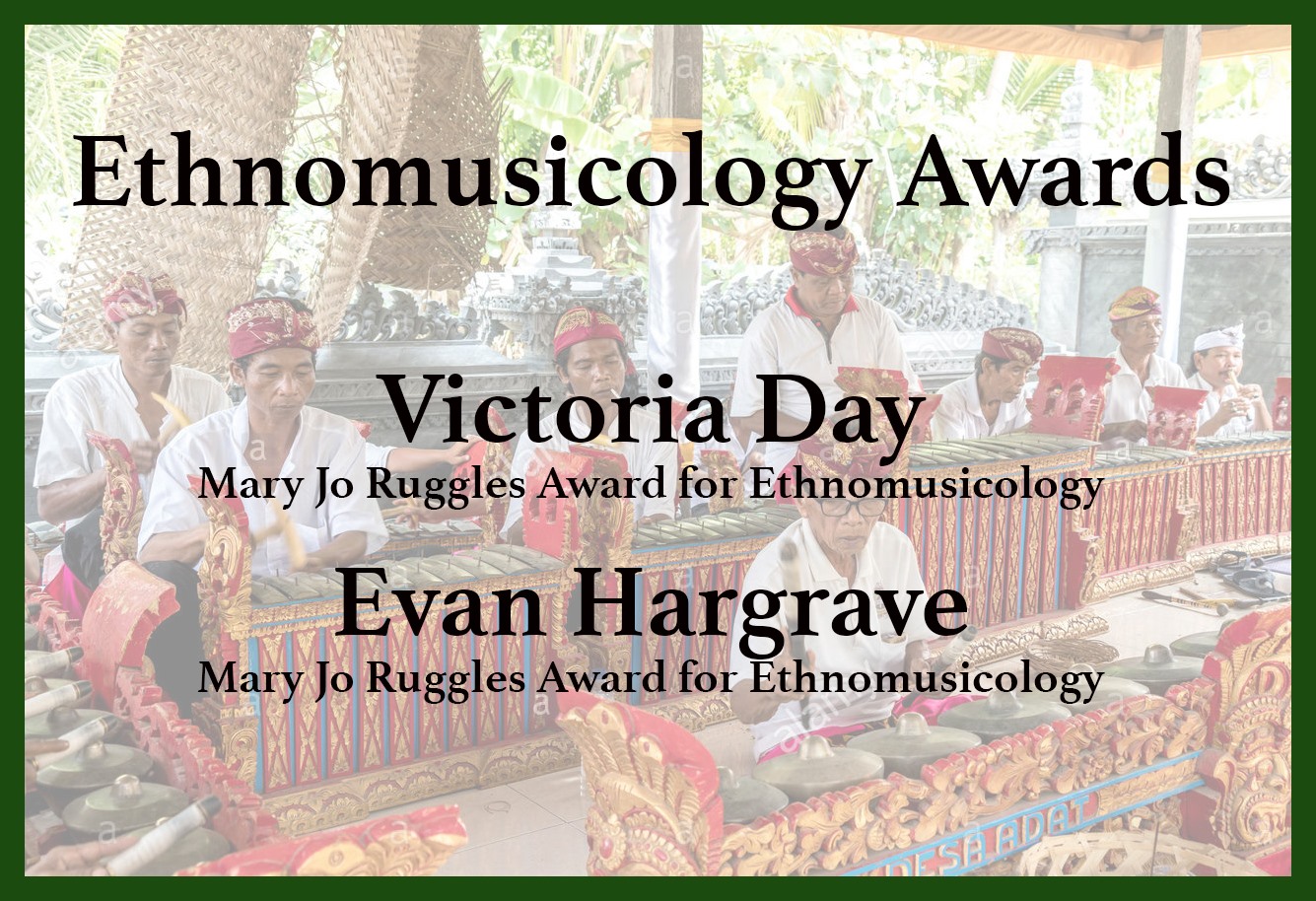 Congratulations to Victoria Day and Evan Hargrave, the recipients of this year's Ethnomusicology Awards!