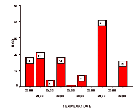 Figure 1. Dysgenesis levels of the strains in A crosses. Strains are given from left to right in their respective GD values as denoted in Table 1. |