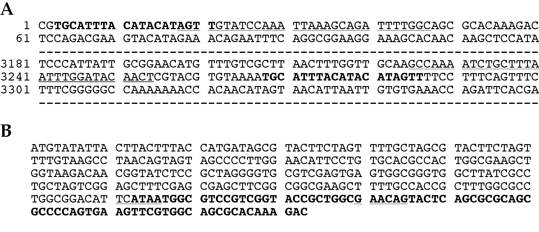 and nucleotides 18-47 (underlined) reverse complement the sequence from 3225-3254