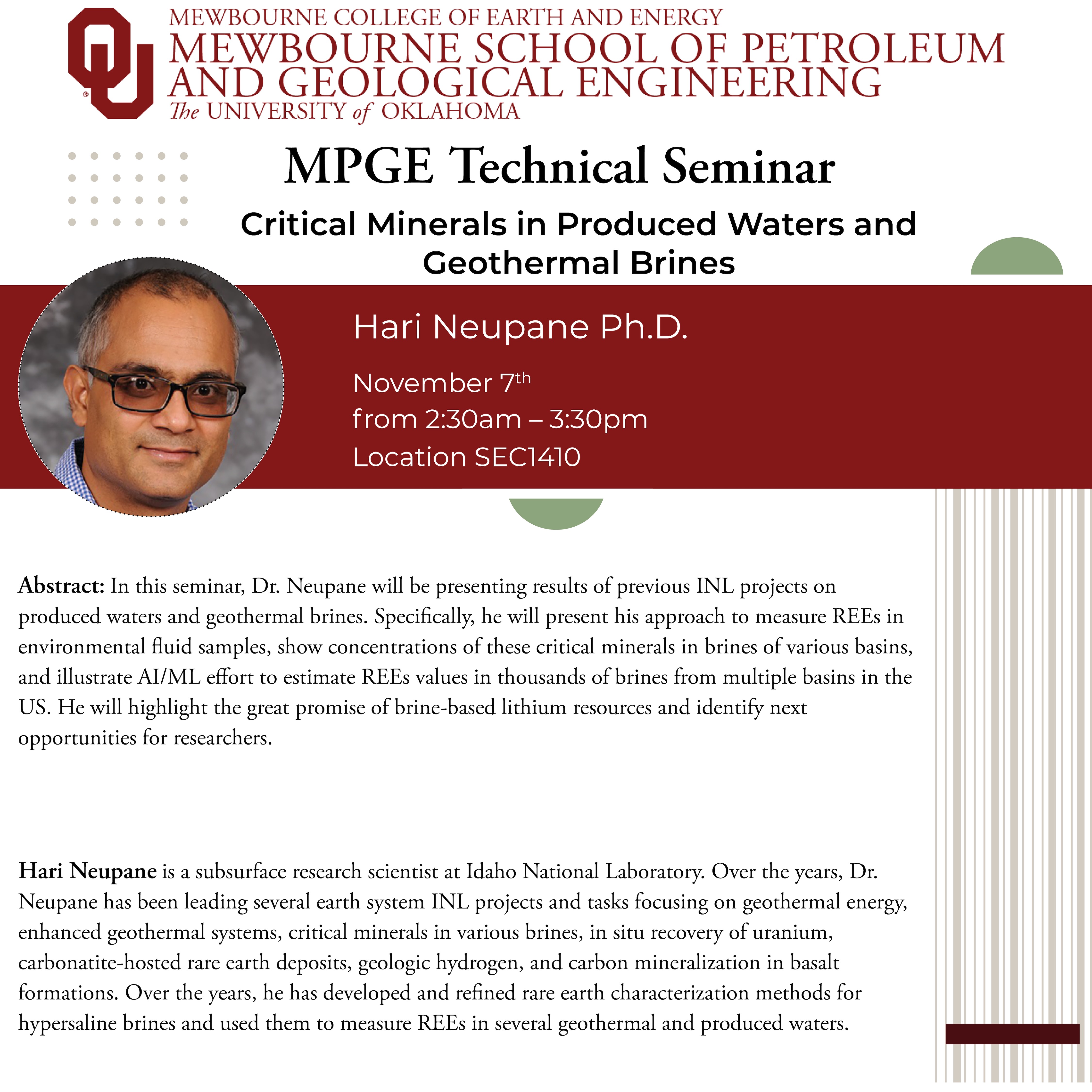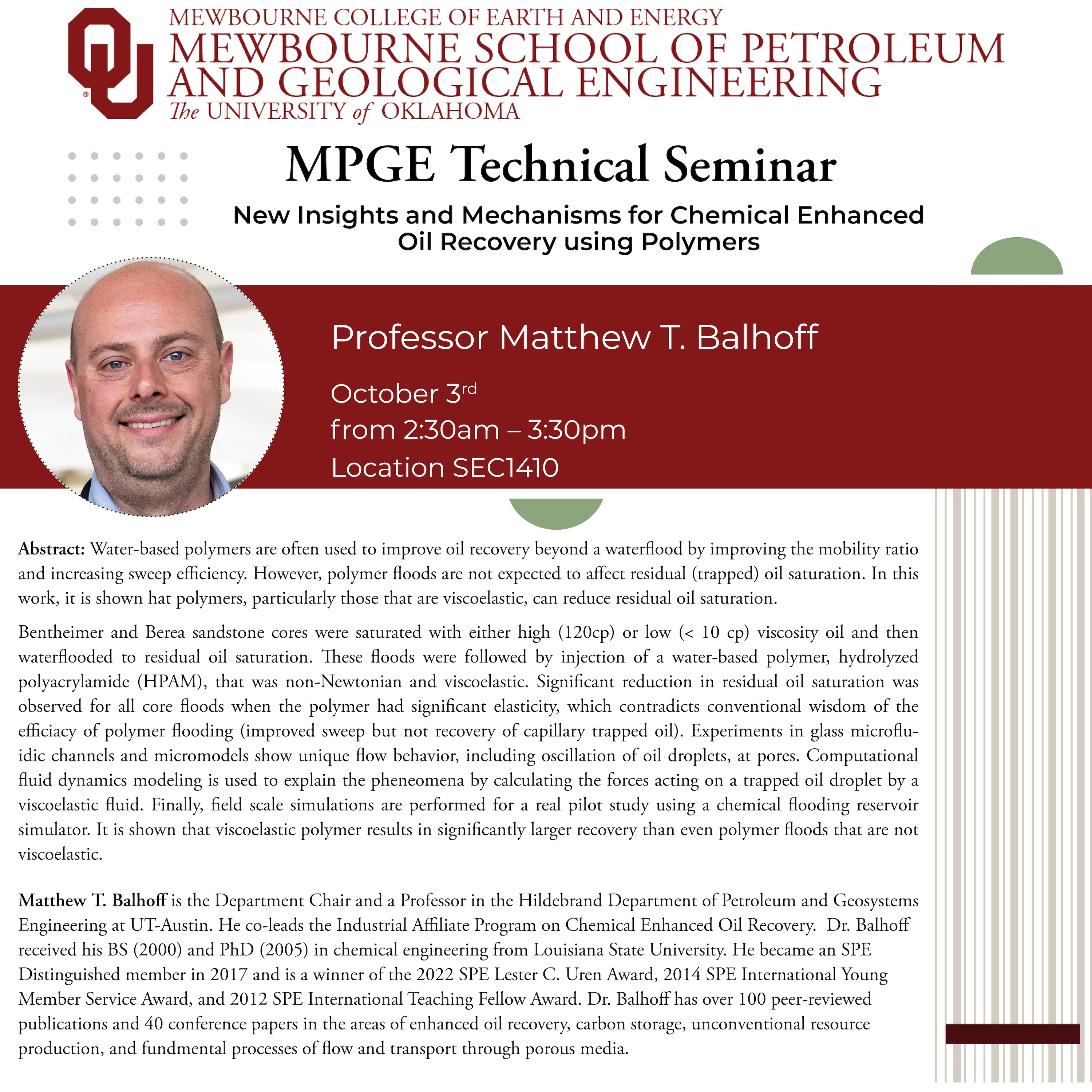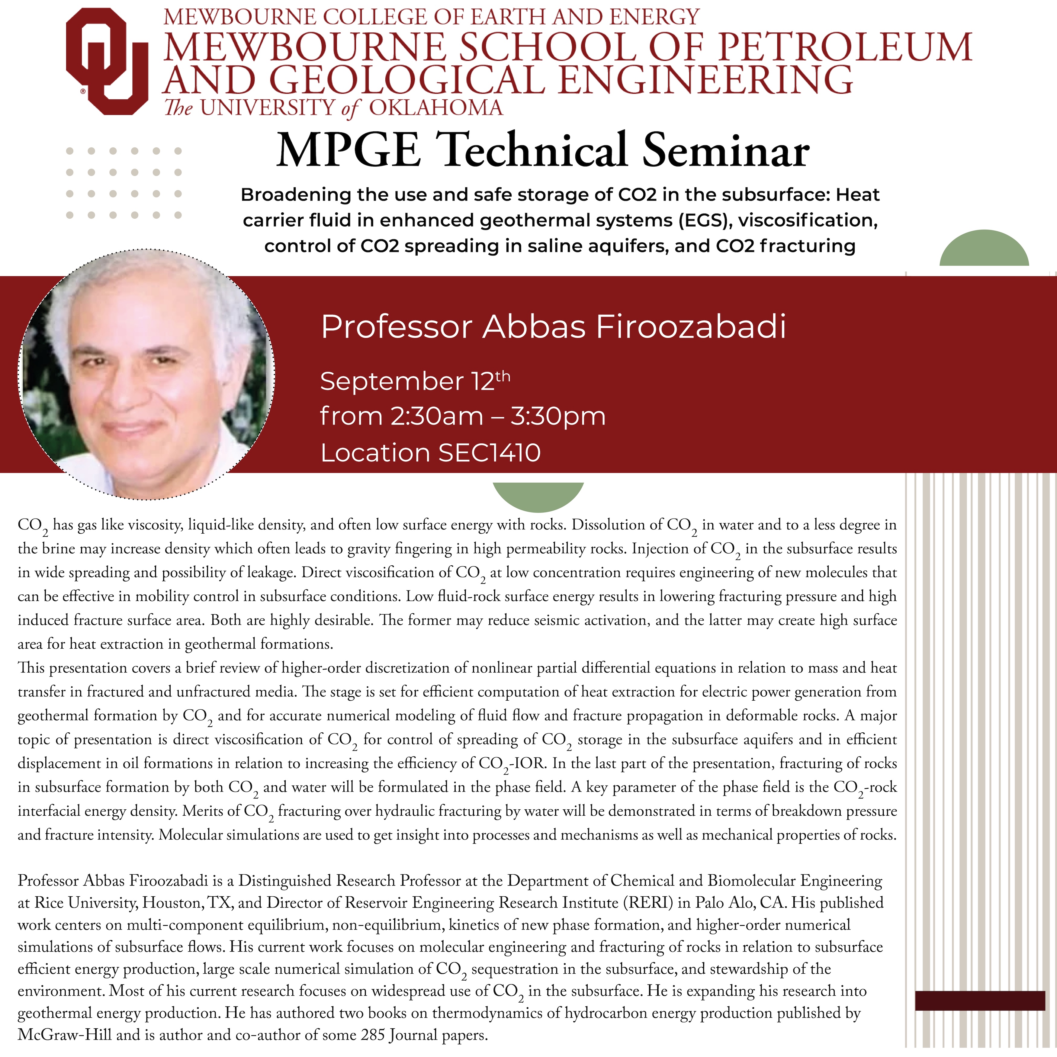 MPGE technical seminar series hosts experts from academia or industry who give presentations and discussions focused on technical topics in petroleum engineering or emerging energy technologies. The series empowers attendees with new knowledge, networking opportunities, skill development, and academic career advancement.