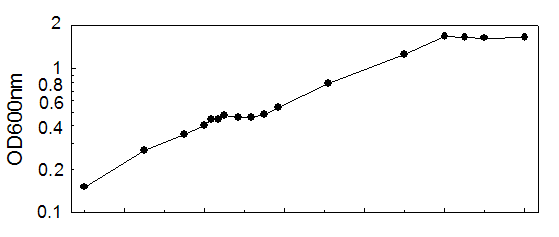 Timepoint Experimental DesignCulture conditions. E. coli MG1655 (CGSC #6300) was cultured in 1 liter of morpholinepropanesulfonic acid (MOPS) minimal medium containing 0.5 g/liter of glucose and 1.5 g/liter of lactose (Neidhardt et al., 1974) in a 2 liter Biostat B fermentor. The temperature was maintained at 37 degrees C and pH was kept constant at 7.2 by the addition of 2 M NaOH. The dissolved oxygen level was maintained above 20% of its saturation level by adjusting the agitation speeds in the range of 400-600 rpm with fixed 1 liter/min air flow rate. Growth was monitored by measuring the optical density (OD) at 600nm. These growth conditions resulted in a diauxic lag lasting 36 min.. The culture continued growing until entering stationary phase upon exhaustion of carbon and nitrogen. RNA samples were isolated at 5 and 10 min intervals following the diauxic lag, and at appropriate intervals during the experiment, by pipeting into ice-cold RNAlater™ (Ambion, Austin, TX) followed by purification using an RNeasy™ Mini Kit (Qiagen, Valencia, CA). The RNA samples were labeled by first strand cDNA synthesis. Labeled targets were hybridized to DNA arrays (Panorama E. coli Gene Arrays, Sigma Genosys Biotechnologies, Inc., The Woodlands, TX). The hybridized arrays were scanned by phosphorimaging at a pixel density of 100 microns (10,000 dots/cm2) with a STORM 820 PhosphoImager (Molecular Dynamics, Sunnyvale, CA) following exposure to a Kodak Storage Phosphor Screen GP (Eastman Kodak Co., Rochester, NY) for 24 hrs. The array membranes were consecutively hybridized, stripped, and rehybridized.Spot-finding and quantitation. Image analysis software (ArrayVision, Imaging Research, Inc.) was used for spot-finding and quantitation of the E. coli Panorama arrays. The raw spot intensities were represented in a row-column format and exported into Microsoft Excel spreadsheets for further analysis, or as comma-delimited files (.csv) for upload to the database. Raw data from each experimental replicate were analyzed in Excel workbooks containing manually executed macros written in Visual Basic, or the data were processed in the database. The first step in the analysis associates the array coordinate for each spot with a unique spot number, the gene name, and related gene annotation. On the membrane arrays there are two spots for each gene, and these were treated as separate determinations. The raw data were normalized by expressing spot intensities as a percentage of the sum of all of the gene-specific spot intensities. The second step in the analysis applies the student t-test to determine the probability that the average of the experimental replicates is significantly different from the average of the control replicates . The P values (derived from the student t-test) for the normalized and natural log transformed data were calculated. The third step calculates relative gene expression between conditions by introducing a threshold value, chosen to be representative of the limit of detection of expressed genes (usually the 500th lowest expressed gene), and then calculating the ratio of the experimental/control expression levels such that genes that are more highly expressed in the experimental condition are given a positive value, and genes that are more highly expressed in the control condition are given a negative value. Control for ratio calculation. The early log phase control values used for the diauxie experiment represent the average of 12 hybridizations: two each from time points 1 and 2 of the H2O2-treatment and time points 1 and 3 of the glucose-lactose diauxie and 4 from time point 2 of the glucose-lactose diauxie. This approach is possible because gene expression is essentially steady-state in early-logarithmic phase and because there is excellent correlation between these time points. The use of these control values allowed us to directly compare the H2O2-treatment and glucose-lactose diauxie. Data Legend Diauxic Growth Data Set (Excel: 4.8