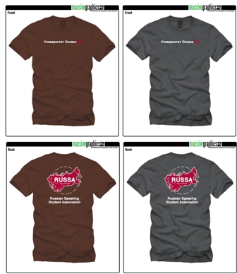 The new t-shirt design from RUSSA!!! You can pre-order these shirts NOW by emailing Roman Voronov at burn@ou.edu or by calling the cell phone 405-517-5739. Please include: the quantity, the sizes, and the color corresponding to each size that you want. The t-shirt price is $15.