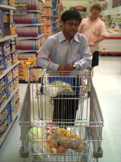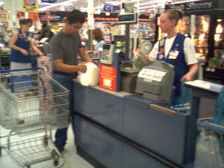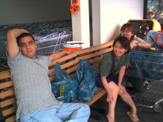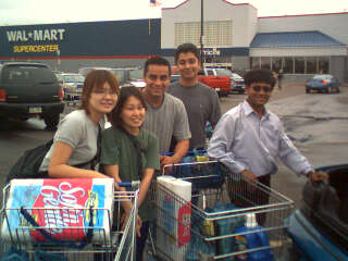 ![]() Starring: Ai Kinoshita Dilip Kumar Jana Jose Sandoval Kanako Muraoka & Oscar Alberto Santara Awarez Also guest staring: Anand Gattu Mani Kunadian & Omar Rosales Wal-Mart shopping is one of the things that so many of us get to experience when we come to America, and after a long trip to Main and West 12th, we were most certainly glad to see some excellent friends from India and from Guatemala. Since we had a digital camera attached to a cell phone, Jose and Oscar jumped in a picture together so we could send it to their family and friends. Dilip, Ai, and Kanako soon followed suit. The shopping continued, and then there was the rush to the checkout line: #1, #2. Some of us finished before the others... A wonderful close-up taken by Jose helped pass the time. Finally we were finished and gladly displayed our treasure. |