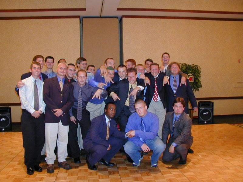 Group photo of the Men of the Delta Chapter at the Pride of Oklahoma dinner the eve of the 2002 Red River Shootout.