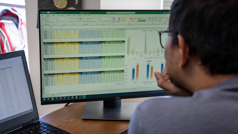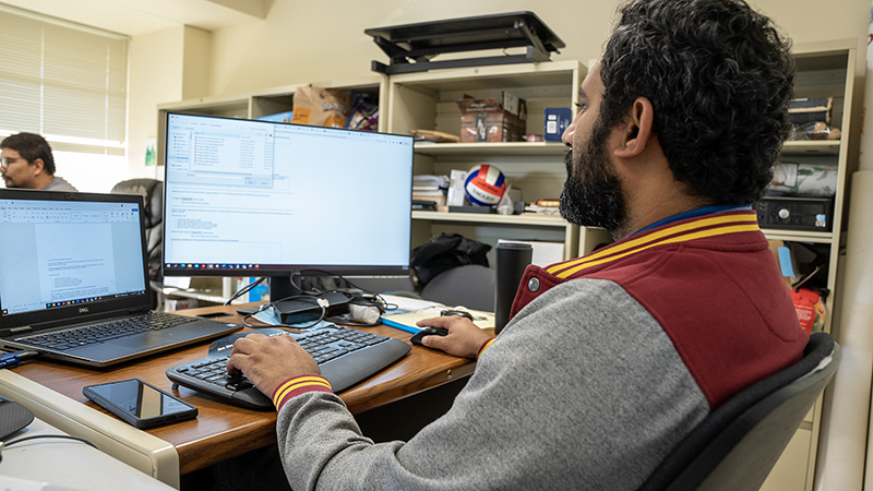 A student working on software development