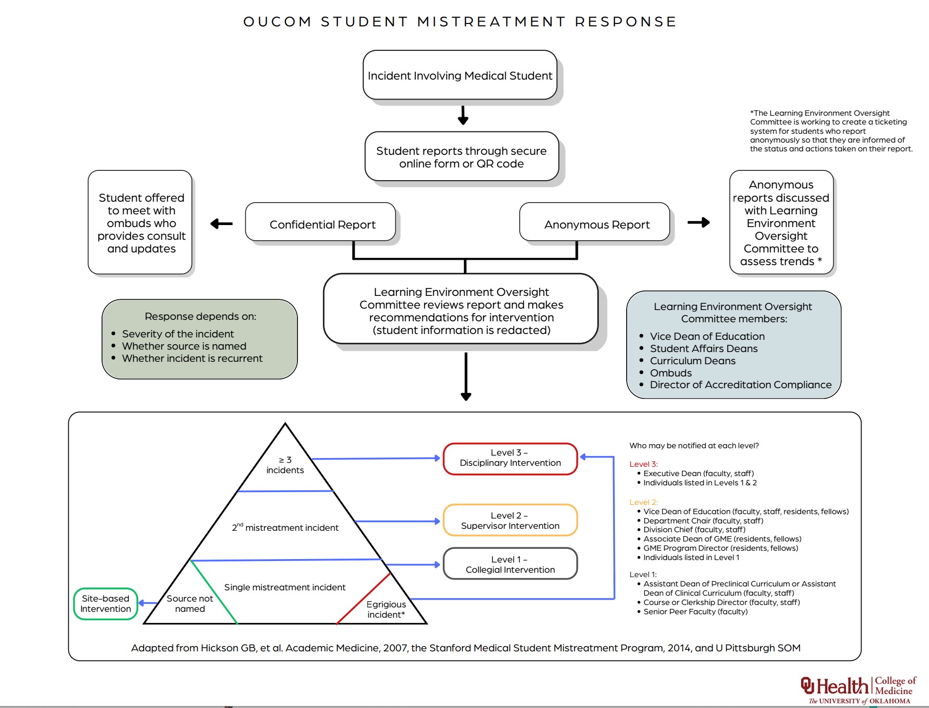 The University of Oklahoma College of Medicine has Zero Tolerance for medical student mistreatment of any kind. Effective learning is best fostered in a positive learning environment of mutual respect between teachers and learners. Each member of the university community should do their part to maintain a positive learning environment.
