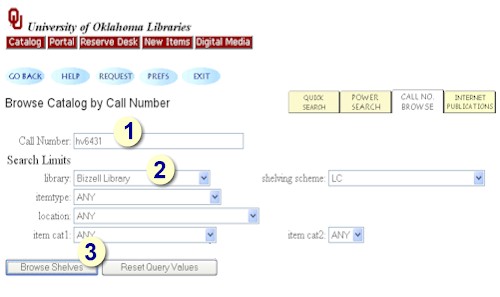 To search by Call Number, you will need to click on the search tab Call Number Browse: